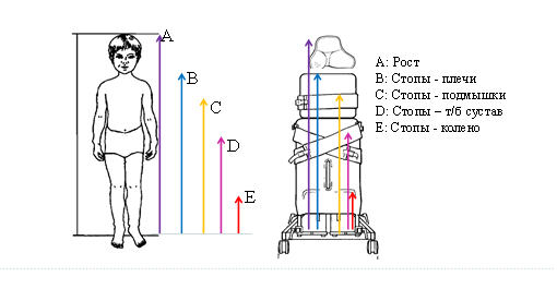 Передне-заднеопорный вертикализатор с разведением ног 30 градусов предназначен для детей от 50 см (1 размер) до 150 см (3 размер)